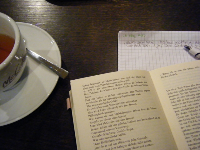 ドイツの駅に待合室なんてすてきなものは存在しないので、ハンブルクでは24時間マックに避難。マックカフェで紅茶をオーダーして、ここでも1時間半、勉強。