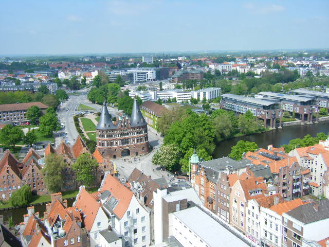聖ペトリ教会の展望台から見える景色は、絶景でした。リューベックの街が一望できる!さっきまであれほどの存在感を放っていたホルステン門も、ここから見ればこんなにかわいらしい
