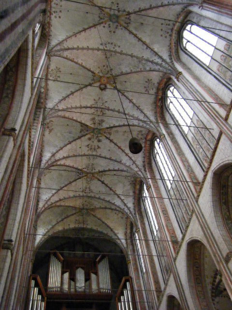 この聖マリエン教会は、北ドイツ(バルト海域)の教会の模範となったといわれる教会。たしかロストックの聖ペトリ教会もこの聖マリエン教会のスタイルを模していたはず。ロストックの聖ペトリ教会は、そのシンプルな内装が気に入っているのですが、基となった聖マリエン教会の内装も非常にわたし好み。すっきりとしていて、重苦しいほどの荘厳さがない(まあ、爆破された鐘をはじめとする反戦のシンボルがいくつかある分、別の意味での重みはありますが)。