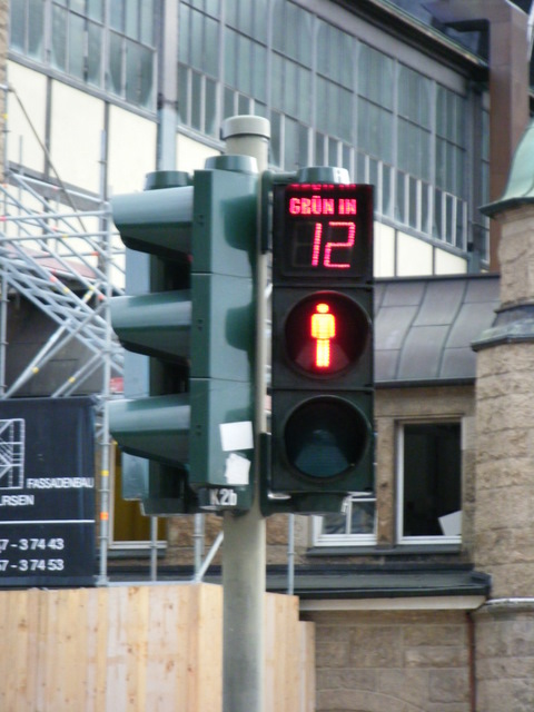 信号の上にタイマー、なんて、ドイツではじめて見た。台湾ではよく見かけたような記憶があるけれど……。