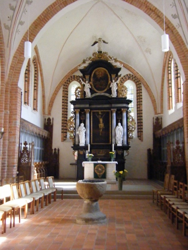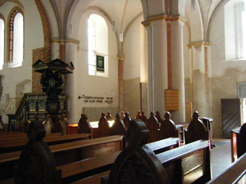 ロストックの聖ペトリ教会も煌びやか!という感じの教会ではないんだけれど、こちらのほうがもっともっと、落ち着いている。ステンドグラスも最小限だし、絵画も、正面の磔刑像以外は見当たらなかった。