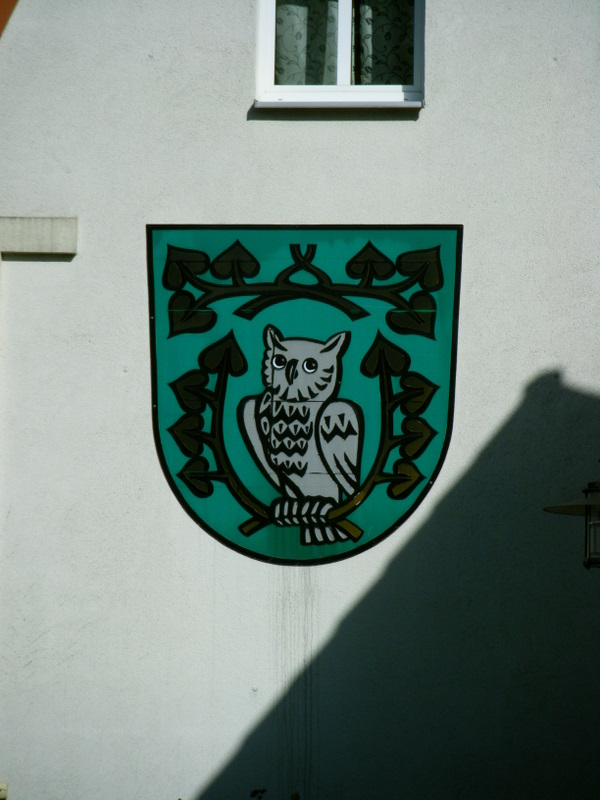途中で見かけた建物の壁に、クリュツの紋章。きゅーと!