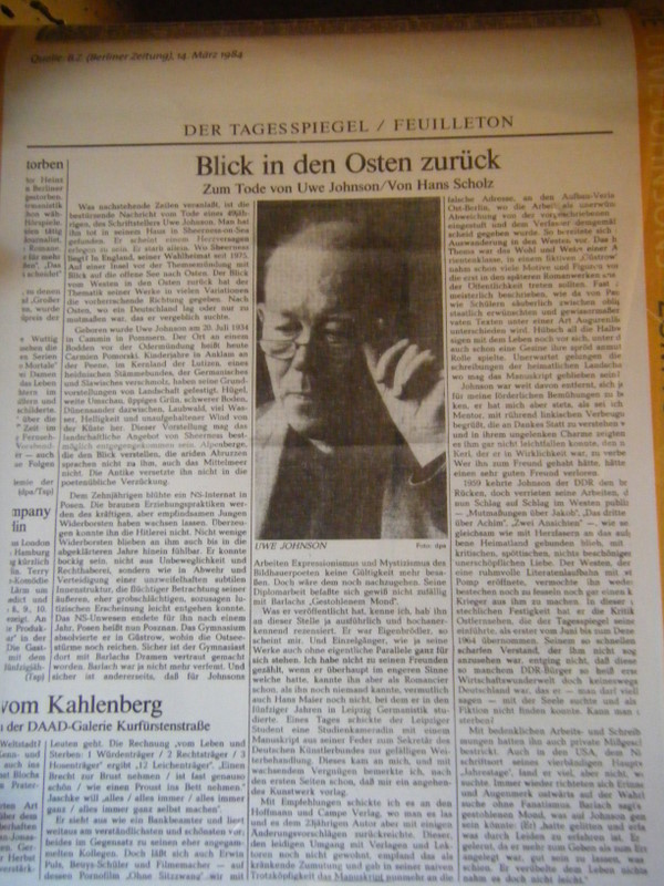 クリスタ・ヴォルフとウーヴェ・ヨーンゾンは、双方とも幼少期に故郷(ポーランド領)を失い、家族とともにメクレンブルクに移り住んだ。バックグラウンドはとても似ているけれど、作家として歩んだ道はまるで違う。片方は故郷を後にすることを決め、もう片方は故郷を去ることを拒んだ。ヴォルフの作品がドイツ全体で読めたのに対して、ヨーンゾンの作品は東ドイツで読むことはできなかった。