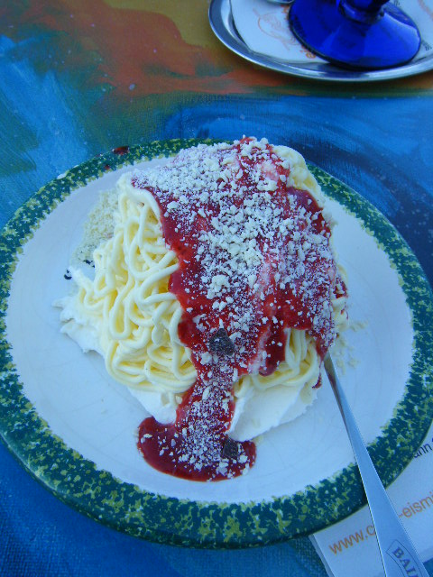 わたしが日本で恋しく思うのは「Pfifferlingeアンズダケ」「白アスパラ」とこの「スパゲッティー・アイス」(正確にはイタリアンジェラートだけど)なのですが、これがもう、在独経験のあるみなさまの間ですこぶる評判が悪い。同期に「あれは許せない」と言われたときは好みの問題かなと思っていたのだけれど、どうもそれだけじゃないみたい。日本人の友人とアイスを食べに行っても、みんな口々に「生クリームいらないよね」という。そして今回、かもさんに「YuNさんそれはドイツ人の味覚です」と突っ込まれる始末。