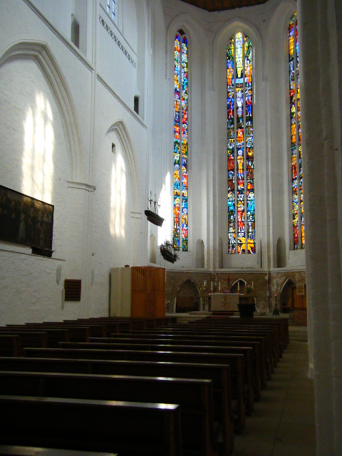 「寄付をすれば写真撮影OK」とのことだったので、寄付をしたのちにさりげなーく写真を撮ってみた。こざっぱりとした、とてもきれいな教会。写真からはちょっとわかりづらいかもしれないけれど、小さな船の模型がいくつか天井からつるしてあるのです!