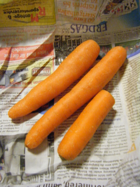 スーパーで買えば1kg1ユーロしないにんじん、マルクトで買うとちょっと高めなのですが、色とつやがスーパーで買ったものとは段違いだった……。(前回買った「バルト海にんじん」とやらが微妙だっただけかもしれない)つるつる!