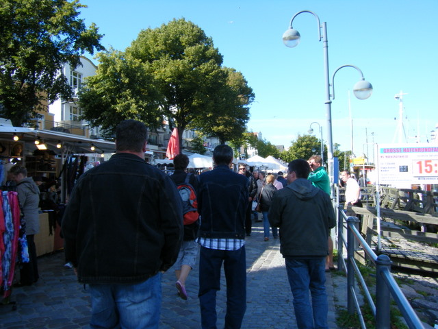 どうやら、今日はおまつりのようです。Dorsch(バルト海でとれるタラ)まつり。シーズン終わりのおまつり、らしい。……あ、もしや昨日の花火ってこのおまつりと関係あるのかな?ヴァルネミュンデ-ロストック間で水上花火をあげた可能性がある!うわあ今日外出なかったら気がつかないままに終わっていたよ。