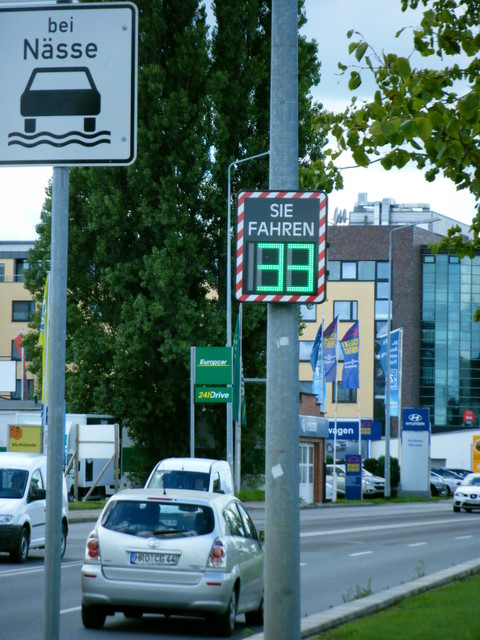 少し離れた距離から観測できるようで、赤い数字を確認した車はきちんと減速している模様。赤数字が点灯しても、車が通り過ぎるころにはグリーンになることが多かった。結構効果あるのでは?