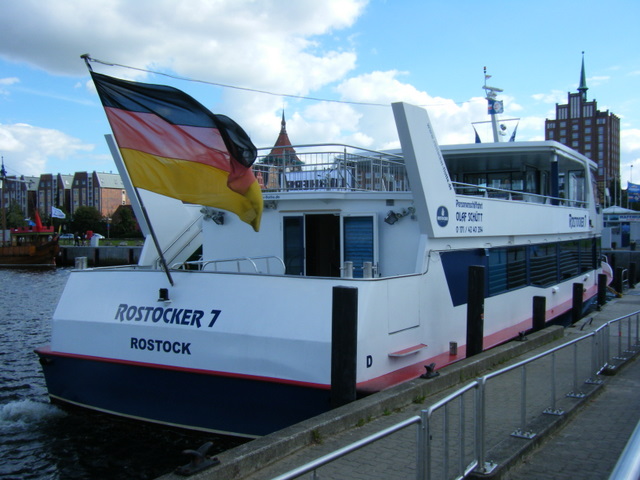 遊覧船。ん?ROSTOCKER 7?と一瞬思ったけれど、そうだ、「7」はロストックゆかりの数字だった!Die Rostocker Sieben...