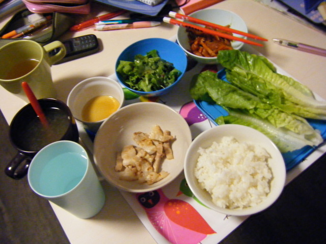 豚バラ肉(塊)を買ったので、夜ごはんは韓国風ひとり焼き肉をすることに。