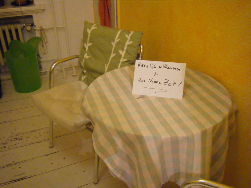 新居のキッチンに「Herzlich Willkommen!」(ようこそ!)と書いてある手作りのウェルカム・プレートが置いてあって、すごくうれしくなった。このおうちで、今日からベルリンでの生活がはじまる。