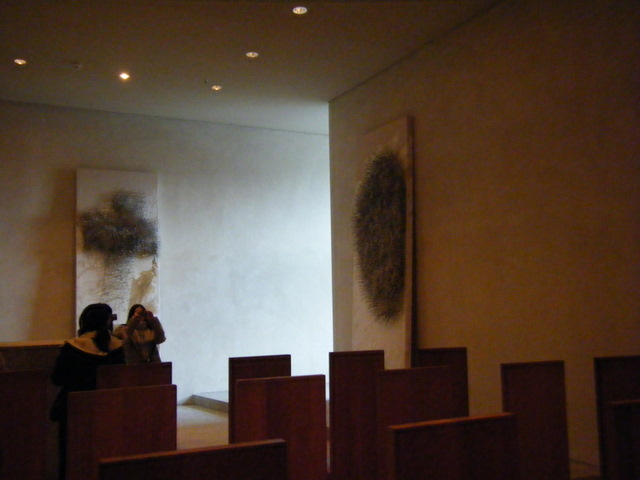 特定の宗教に限らず、すべての宗派のひとが祈りを捧げられるようにデザインされた部屋。現行の政権はキリスト教系の党が握っているので、「十字架を立てろ」という要求があったそうですが、この部屋をデザインしたアーティストが反発したため、妥協案としてシンプルな木製の十字架を祭壇に「横たえて」あります。