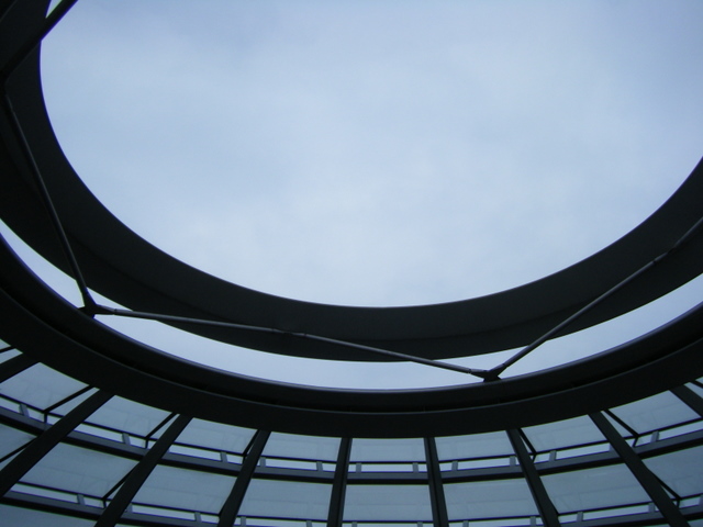 誰でも気軽に入れる、ガラスのドームを冠した統一ドイツの国会議事堂。長蛇の列ができていたので、泣く泣くあきらめたのでした。