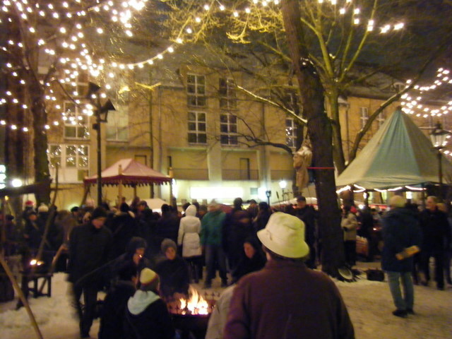 旧市街から市庁舎前まで、すっと一本のメイン・ストリートが通っているのですが、この道の左右にクリスマスの屋台がずらりと並んでいる。