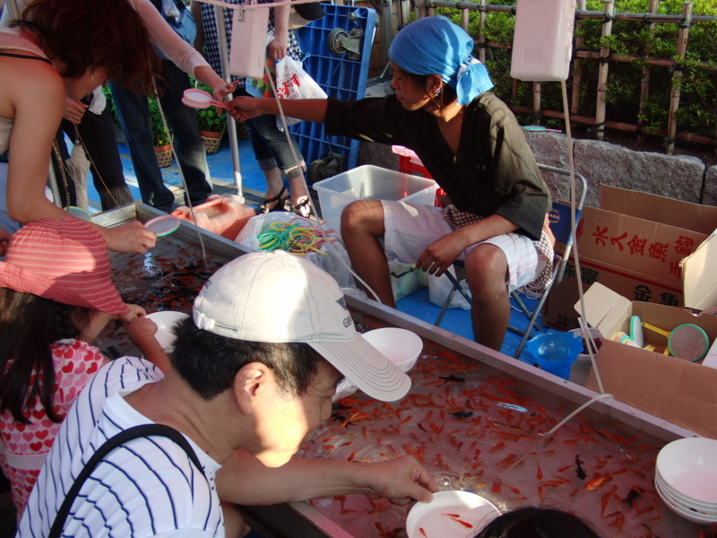 金魚すくい!一番手前のおじさんはものすごく上手だった。