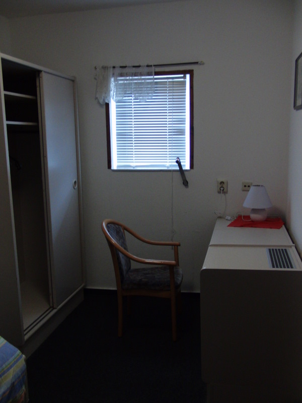 部屋のほうはなんとなく傾いていて、バスルームのドアは開けっぱなしにしても自然に閉まってしまうほど。しかし中は結構快適です。デフォルトで開いていた窓が閉められない!と大変焦りましたが、すぐわきのハンドルを回したら閉まった。よかった。寝巻を忘れたので(おろかもの!)、この寒い中で下着のまま寝るのか……と悲観的になりかけた。